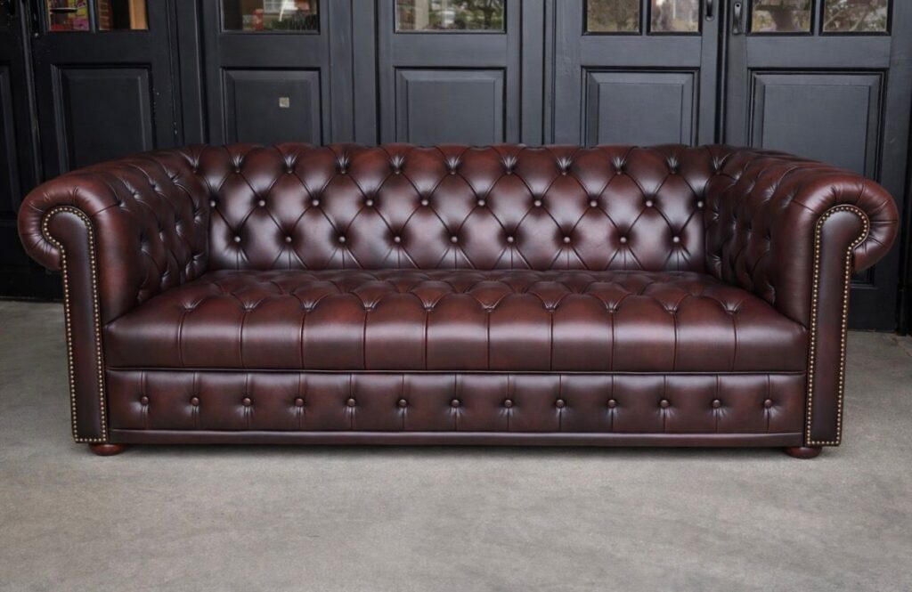 Na een volledige restauratie is de bank weer in uitstekende staat gebracht. Het meubel is opnieuw bekleed met hoogwaardig leer, zorgvuldig afgewerkt voor een luxe en duurzame uitstraling. De kussens zijn opnieuw opgebouwd en bieden weer optimaal zitcomfort. Daarnaast zijn de houten poten hersteld en professioneel afgewerkt. Dankzij deze grondige aanpak heeft de bank zijn karakter, comfort en uitstraling volledig teruggekregen.